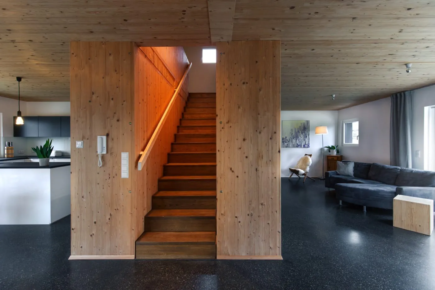 Massivholz und natürliche Materialien wurden im Außen- und Innenbereich des Hauses verwendet.